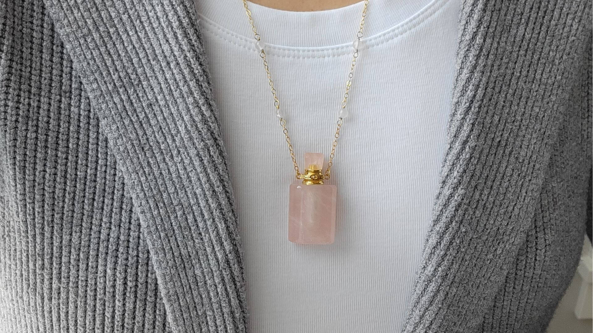 Luxury Rose Quartz Aromatherapy Bottle Necklace