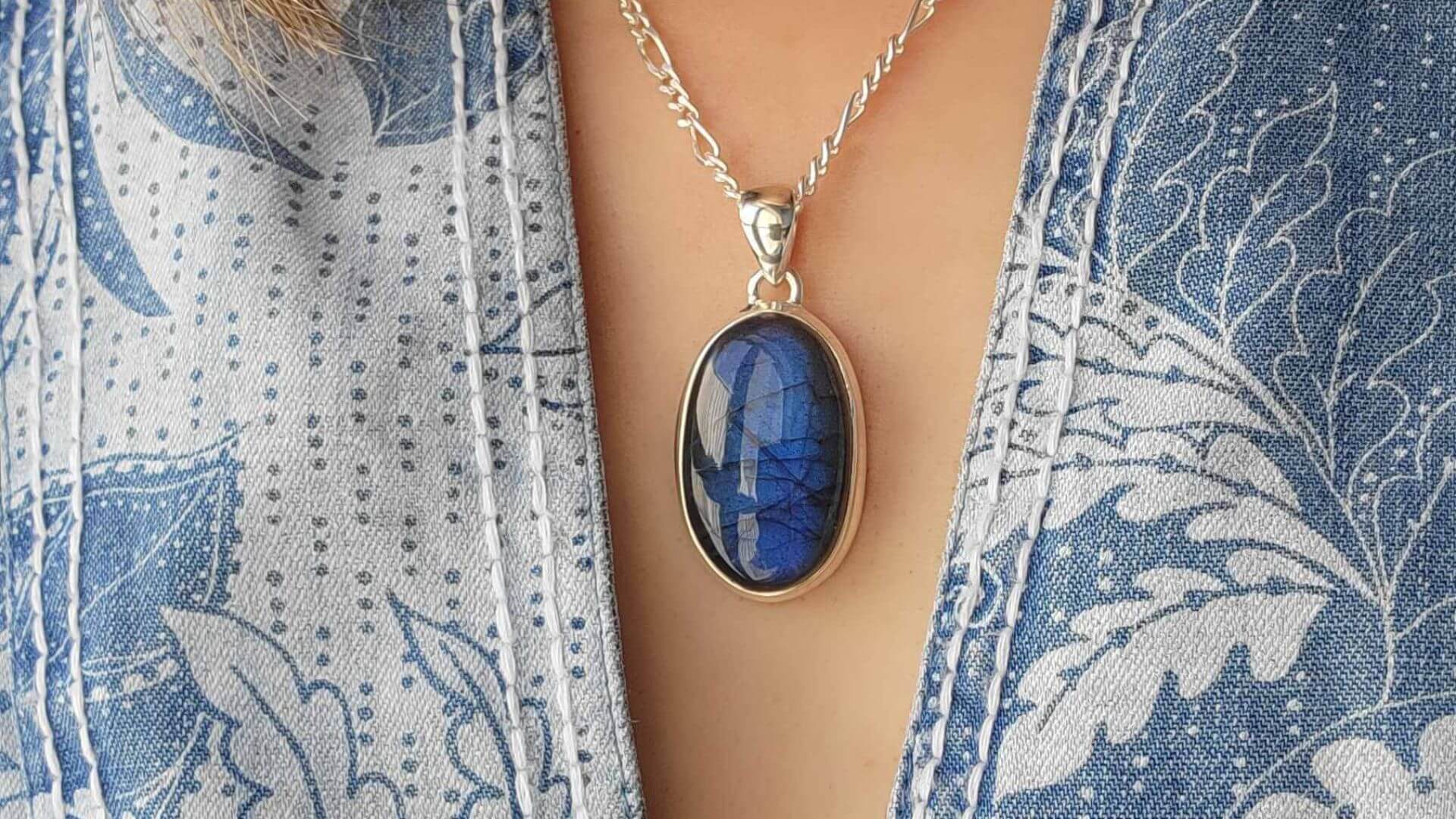 Oval Labradorite Pendant in 925 Sterling Silver | Strong Blue Flash Necklace