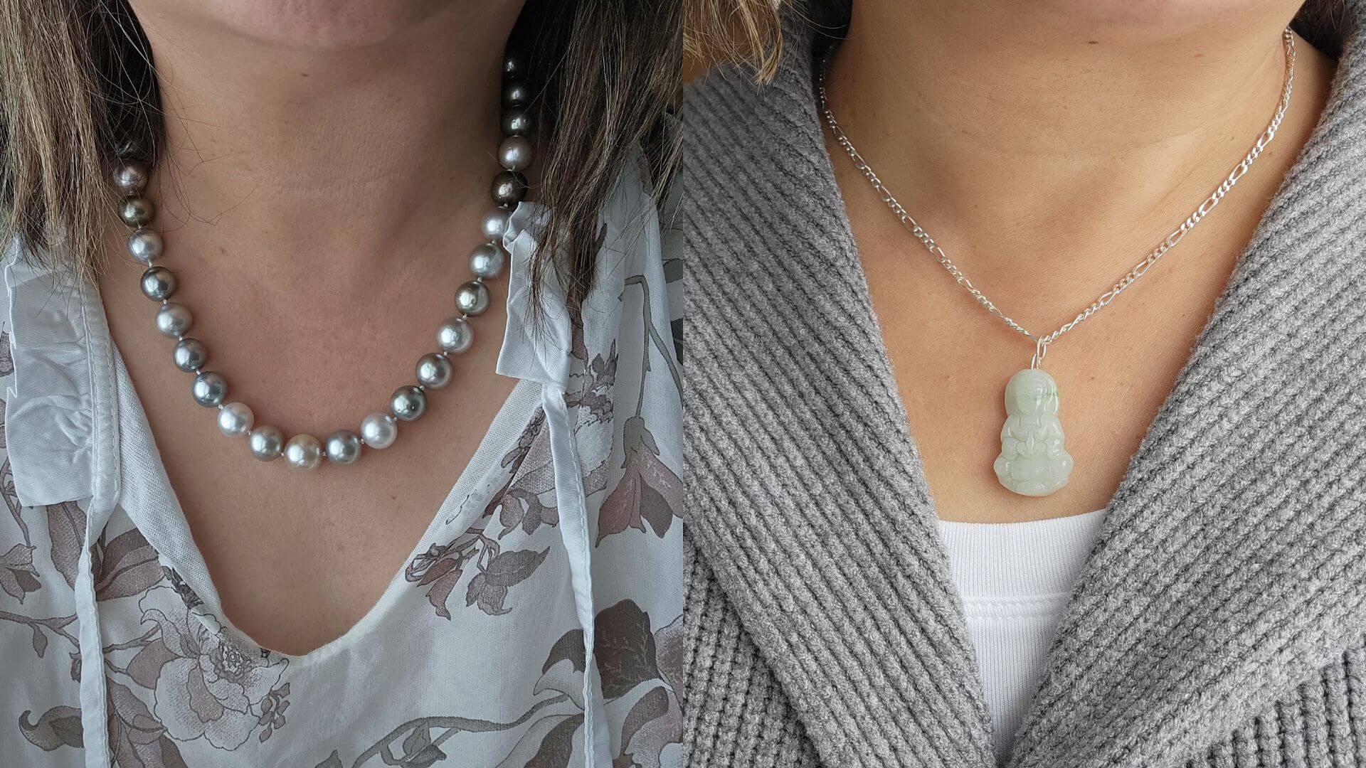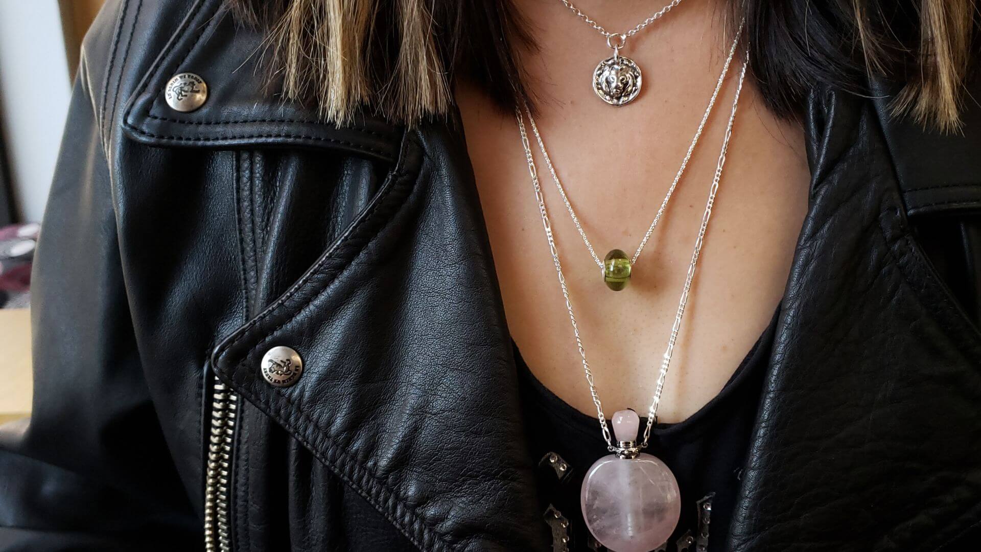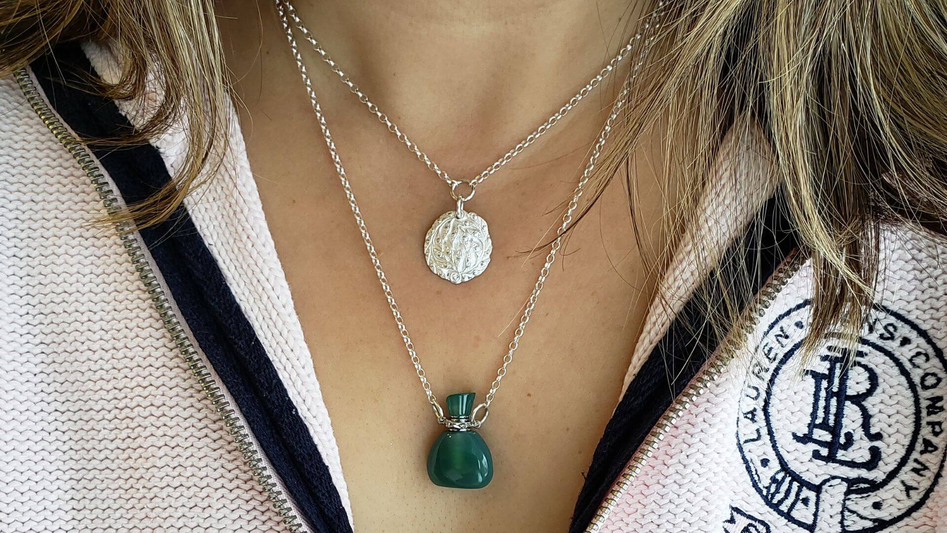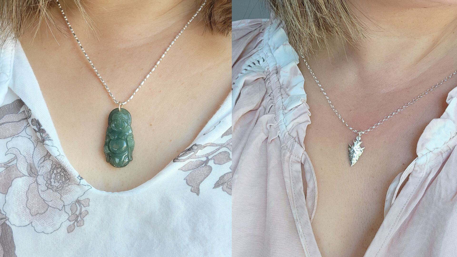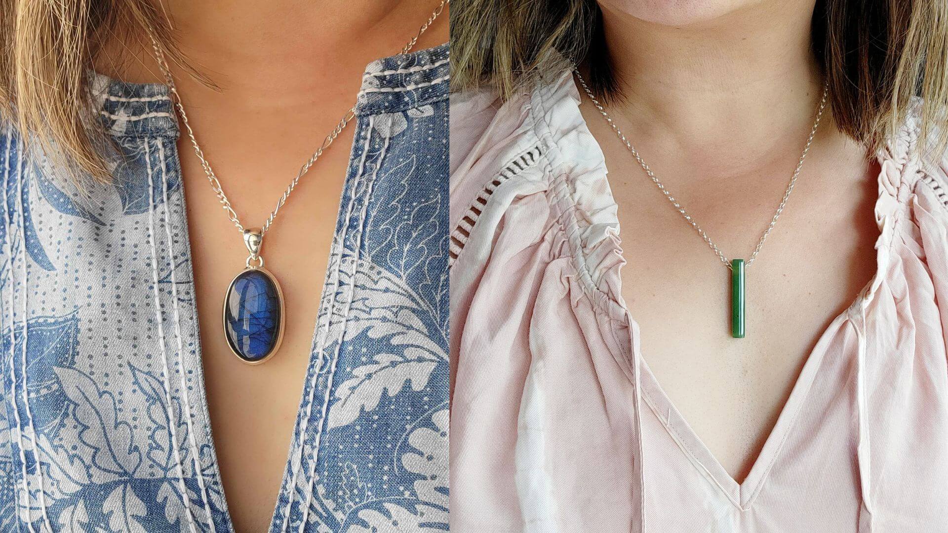 For example, pair a petite jade charm on a short silver chain with a Baltic amber pendant at mid-length, then add a heavy silver chain necklace for a bold finish. Or try mixing metals — a delicate gold charm necklace layered with a sterling silver gemstone pendant creates modern contrast.