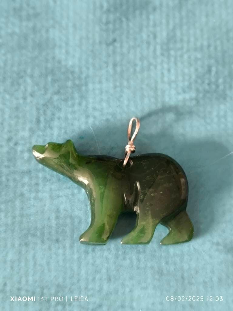 Large polar bear pendant made from genuine jade - a symbol of strength, resilience, and longevity. This pendant captures the majesty of the polar bear and the allure of the jade gemstone.